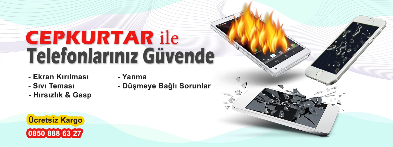Cepkurtar bir cep telefonu koruma hizmetidir. Cepkurtar ile artık cep telefonum kırıldı, suya düştü, su döküldü bozuldu, çalındı, çıkan yangında yandı derdine son. İkinci el veya sıfır hür türlü cep telefonlarına kasko yapıyoruz. Kargo kodumuz ile cihazlarınızı ücretsiz kargo ile bize gönderebilirsiniz.
